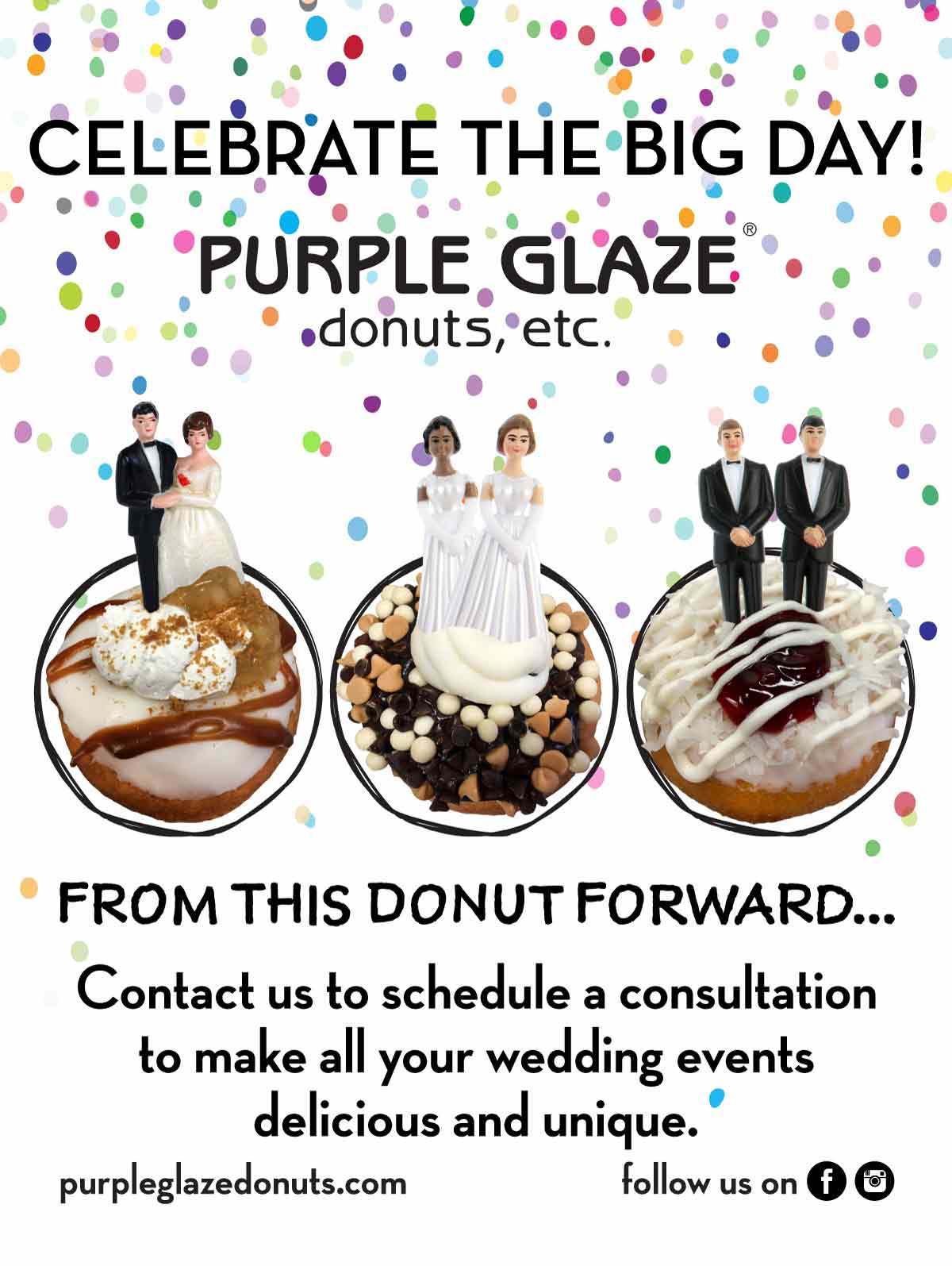 Purple Glaze Donuts, etc.’s original owners reached out looking to create a unique and quirky identity for their new donut shop. Once completed, a website, marketing materials, advertising, and store visuals followed.